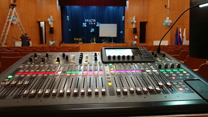 Pri našem delu uporabljamo profesionalno opremo svetovno priznanih proizvajalcev, kot so Behringer, JBL, Electro Voice, Mackie, Avolites, Sharpy, Cameo…